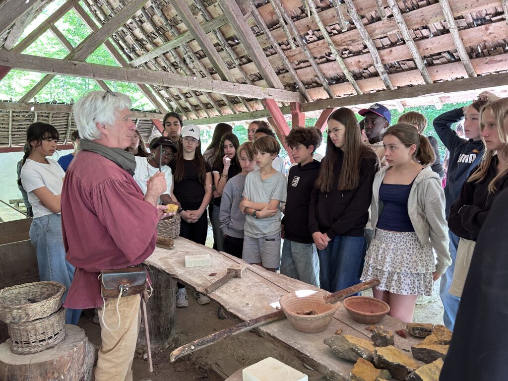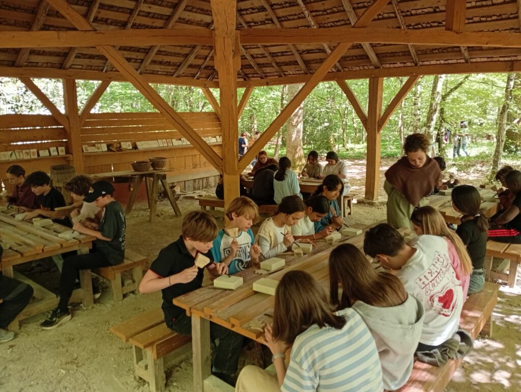 Direction ensuite Guédelon, ce chantier unique au monde où l’on construit un château fort avec les techniques du XIIIe siècle. Au-delà de la visite, nos élèves ont pu mettre la main à la pâte en participant à un atelier de taille de pierre. Manier le ciseau et le maillet comme les bâtisseurs d’autrefois : une expérience qu’ils ne sont pas près d’oublier !