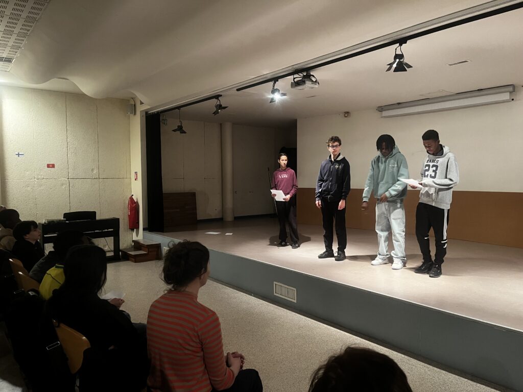 Le poème a été lu dans la langue d’origine par les UPE2A et en français par les écodélégués.