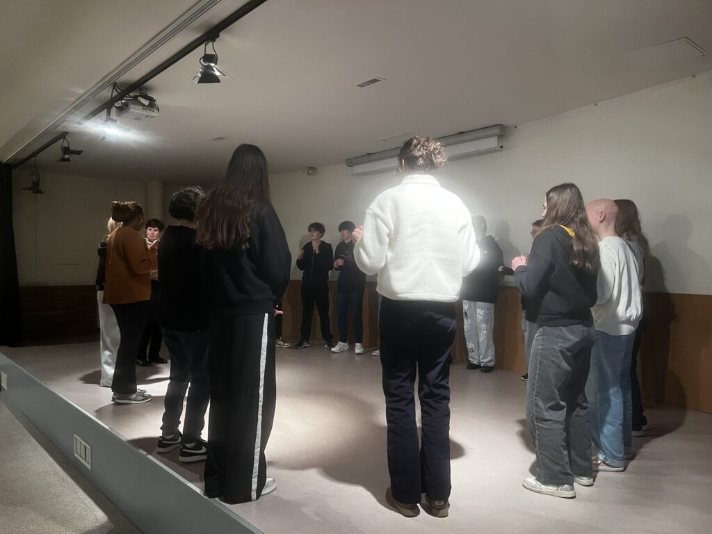 un premier atelier Théâtre mené par Béatrice de l’association « Rêve Mobile » à l’Auditorium avec notamment la lecture et mise en scène du poème « Tu dis » de Schneider.